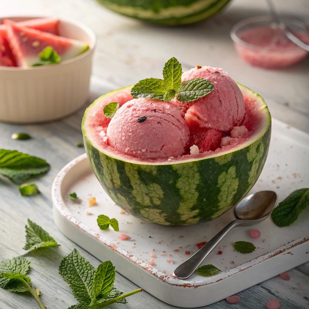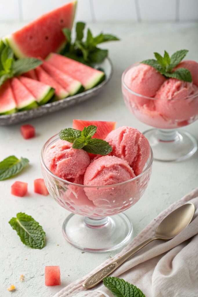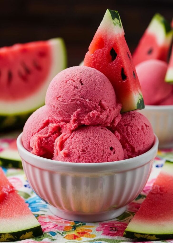 Watermelon Mint Ice Cream: Blend a handful of fresh mint leaves into the watermelon puree. It tastes like a fancy cocktail in ice cream form.