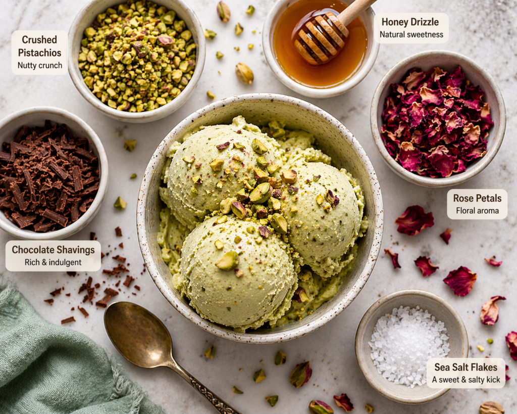 - Pistachio Cardamom: Stir Β½ teaspoon of ground cardamom into the base. This is a Middle Easternβinspired combo that tastes absolutely unreal.